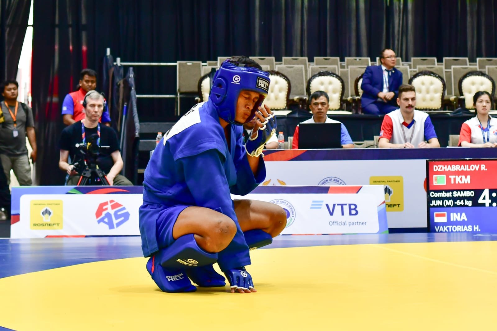 Handezka meraih medali perunggu dari kelas 64 kg Combat Sambo Junior putra setelah mencatat hasil sekali menang dan sekali kalah.