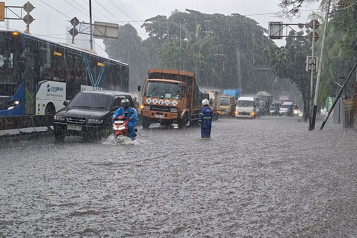 Curah Hujan Tinggi Sementara 17 ruas jalan di Jakarta yang terendam banjir hingga Kamis siang di antaranya: