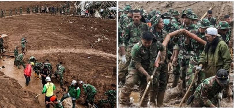 Dikatakan, hujan lebat yang mengguyur selama hampir 2 malam, diduga kuat pemicu terjadinya bencana longsor. Hal itu menimpa satu desa yang kebetulan ada prajurit Marinir sedang berlatih.