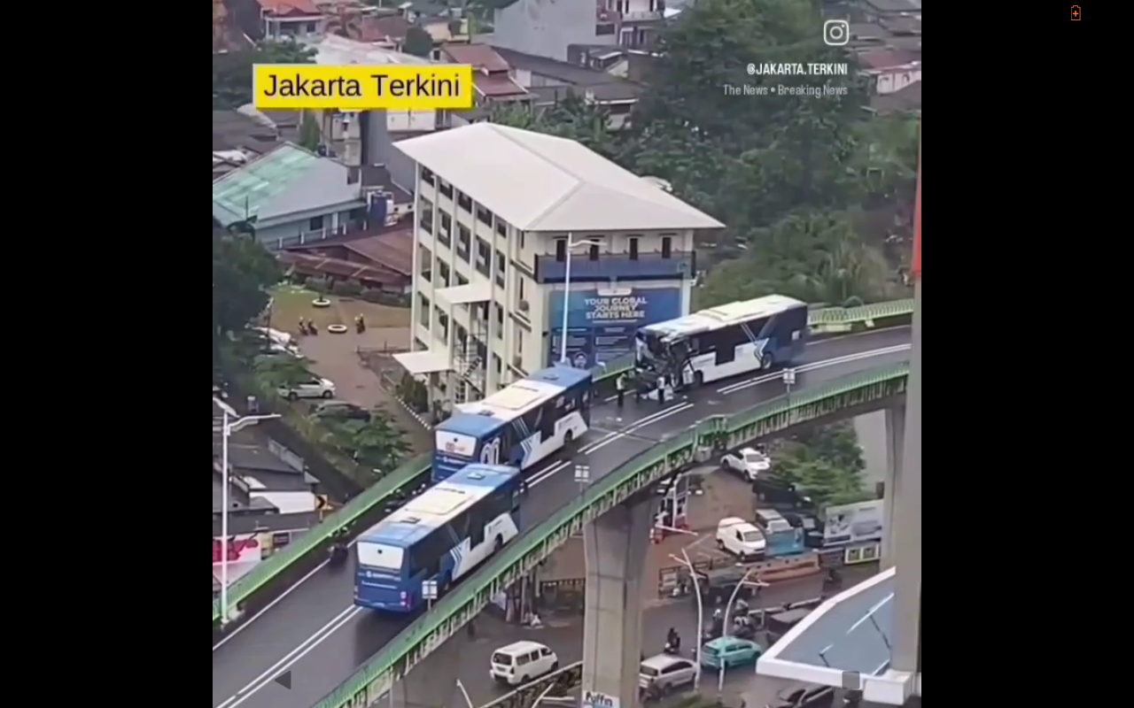 IJN TV – Senin pagi (23/2/2026), dua buah bus Transjakarta terlibat adu banteng di ‘jalur langit’ koridor 13 Cipulir, Kebayoran Lama, Jakarta Selatan.