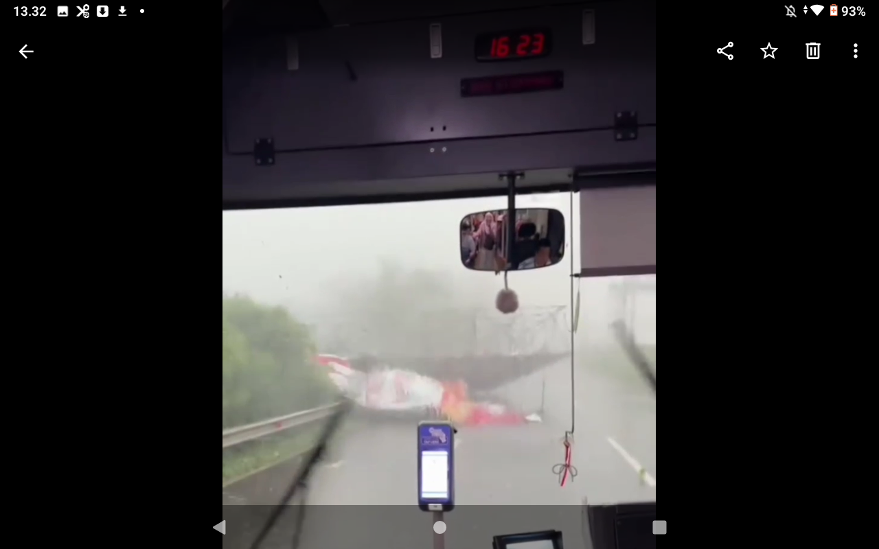 IJN TV – Hujan lebat dan angin kencang, penumpang TransJakarta dikagetkan dengan robohnya papan reklame di Exit tol Cawang, Minggu (12/4/2026), nyaris menimpa bus. Akun instagram abautdkj dan newsforjkt membagikan video tersebut, harapannya pihak Jasa Marga memeriksa secara berkala fasilitas tersebut.(*)