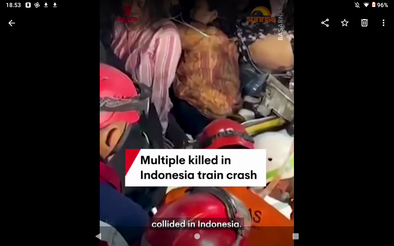 IJN TV – Instagram Siaran TV7 Australia membagikan rekaman liputan tabrakan KA Argo Bromo dan KRL di Stasiun Bekasi Timur. Video tersebut mendapat 300 ribu like dari netizen dan 5000 lebih komentar.(*/editor:jeffrysarafil)
